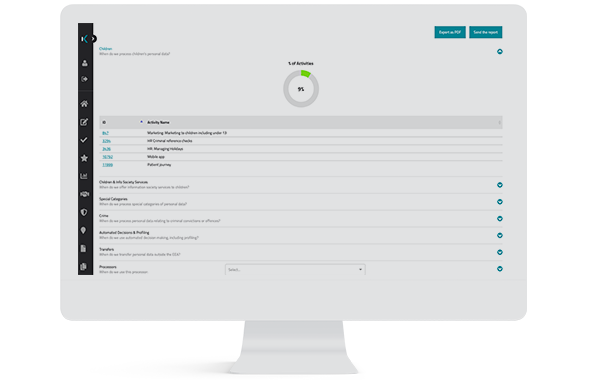 Our international RoPA is simple to use and ensures your team, or teams across your group, all follow an easy, uniform process covering everything you need to push to and maintain compliance.