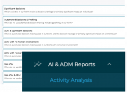 New reporting on AI, and automated decision-making, live interrogates your RoPA, surfacing key insights on your use of AI, significant decisions, human oversight, whether you’ve carried out an AI Assessment and more.